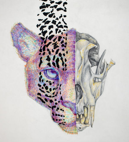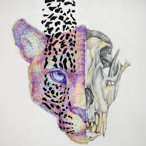 A leopard’s face transitions into a skull, merging vitality with decay. The piece explores instinct and mortality through anatomical precision and expressive pattern. I wanted to visualize how strength and fragility exist within the same form.